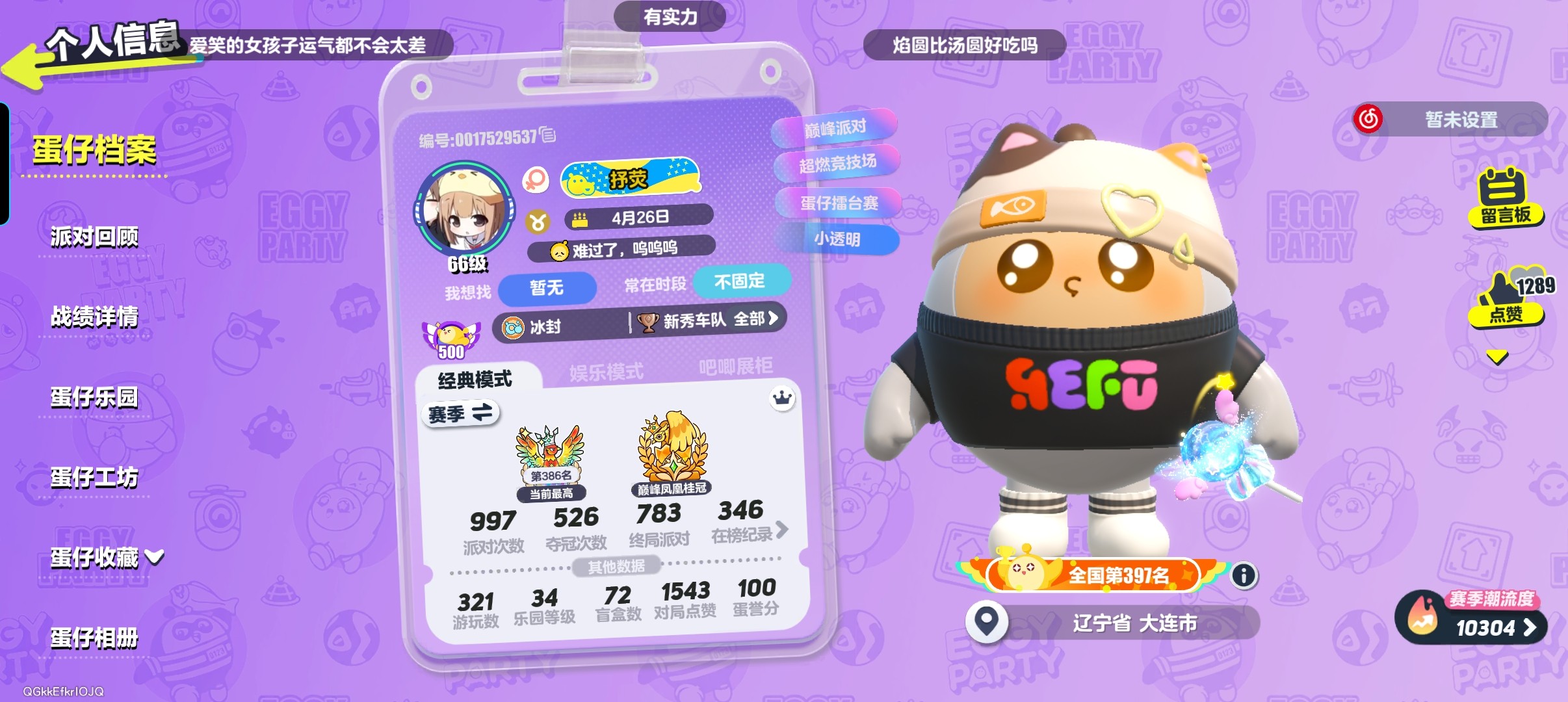 666,好友背着我上无敌,帅炸了,我也炸了 只记得上赛季刚更新的时候和他打了几局双排,拿了个国1,他国2,之后没玩过 #蛋仔派对#