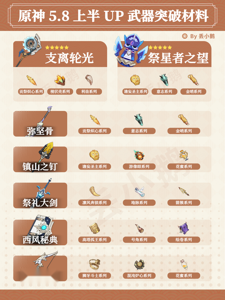 我是丢小鹅,今天为大家带来【原神5.8】版本上半部分的武器突破材料指南~