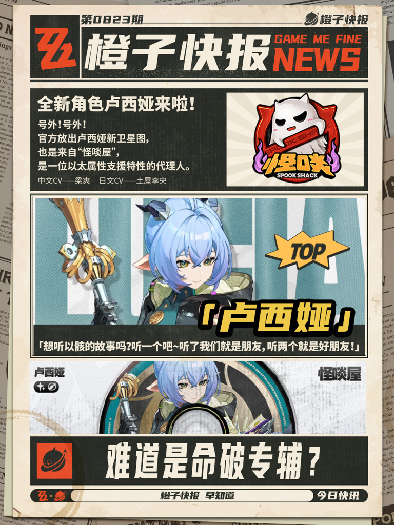 官方刚刚公布了全新角色卢西娅,她属于怪啖屋小队阵营,是一位拥有以太属性支援能力的代理人。