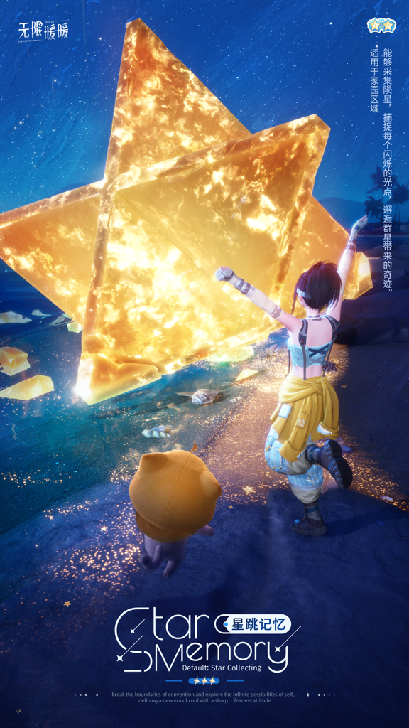 这套装不仅外观帅气,更拥有强大的能力。当暖暖穿上“初始·采星”套装,她可以轻松捕捉空中的陨星,捕获每一缕闪耀的光点。此技能特别适合在家园区域使用,让她在星光的海洋中,发现隐藏的奇迹。施展能力后,暖暖会开启特殊的视野,敏锐地察觉到身边微弱的星光,帮助她在星空下收集更多的陨星碎片,完成属于她的星辰之旅。