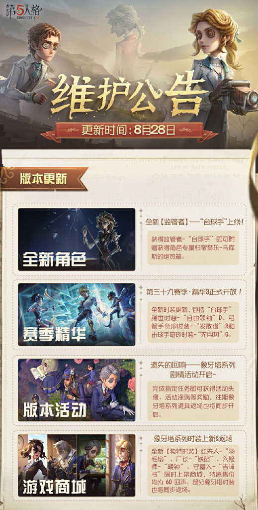 此次更新的亮点是全新角色【监管者】——“台球手”正式加入游戏