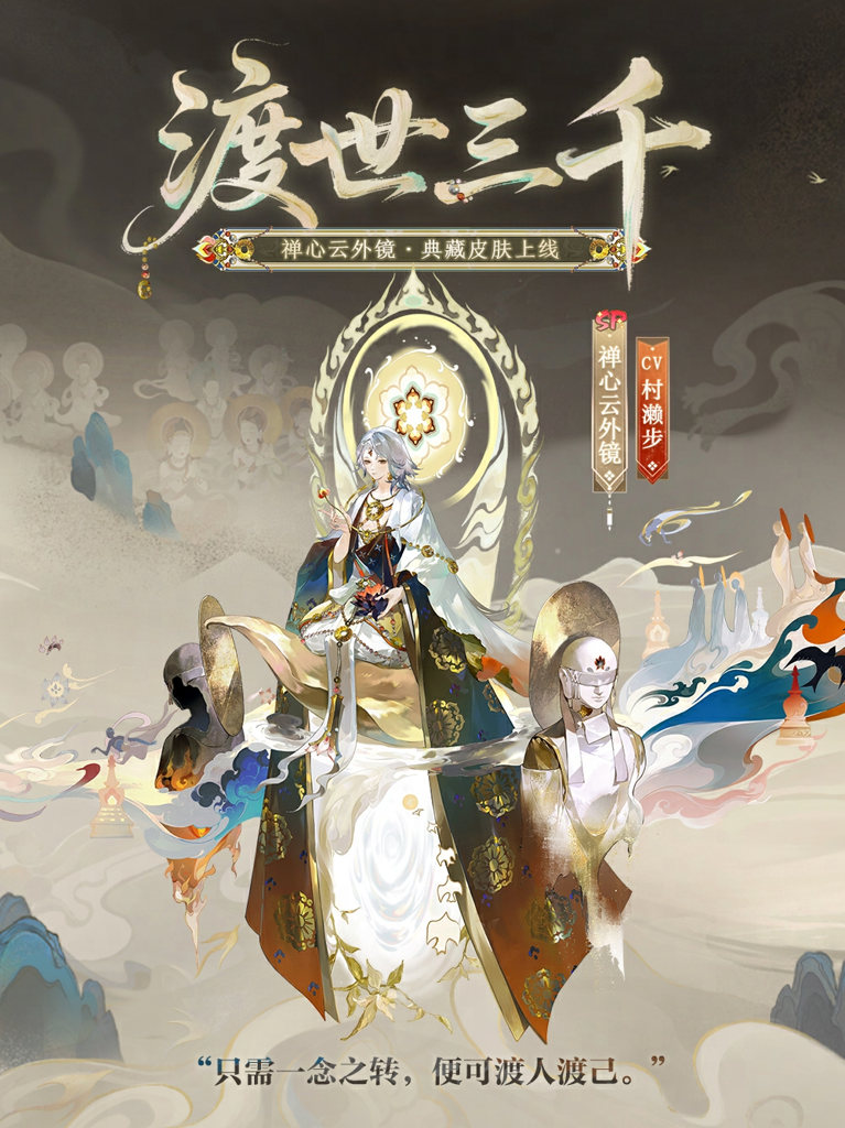 △#禅心云外镜典藏皮肤#「渡世三千」将在6月18日维护后正式上线皮肤商店,售价为148魂玉。首周限时优惠,特价仅需118魂玉。