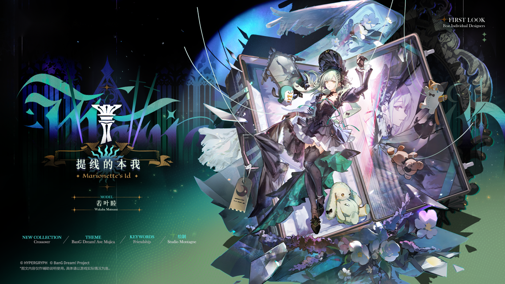 最新推出的服饰系列中,若叶睦携手AVE MUJICA合作推出了主题装扮“提线的本我”。这套服装灵感源自少女在梦境中穿着的演出服,展现出她下定决心后,亲手操控长线的坚定姿态。