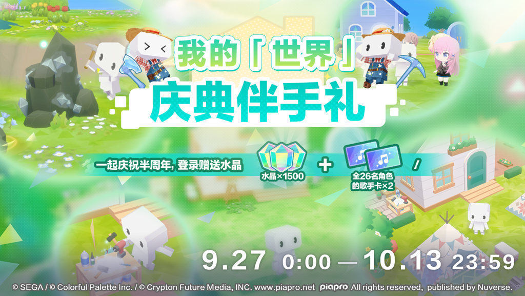 只要在9月27日零点至10月13日23点59分期间登录游戏,即可获得丰厚奖励,包括水晶1500个以及全部26位偶像的歌手卡各两张!这是一份感谢大家一直支持的特别礼遇,不容错过。