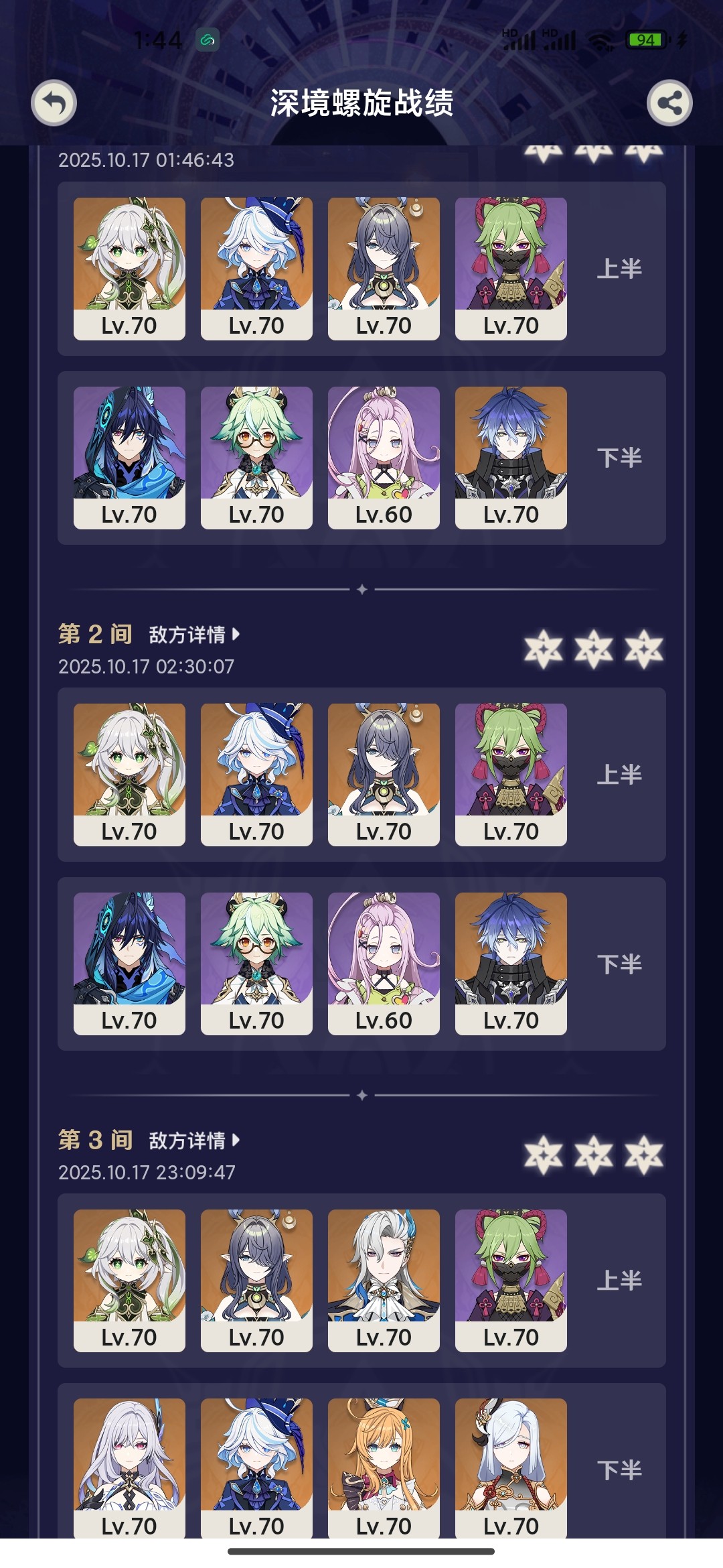 #35级满星深渊12层# #原神6.0版本# 感谢闲者大大和秋风大大,又帮我打满了这期挪德卡莱的深渊。提前开了几次香槟,然后就是差点。😄能打满真靠凹度和运气了。
