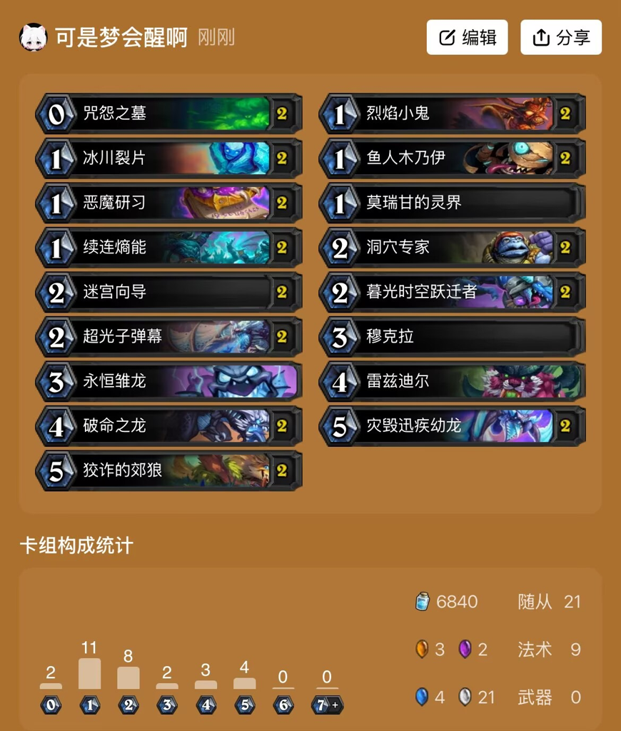以下是一个6-1的快攻撕裂术卡组推荐,强烈推荐尝试。