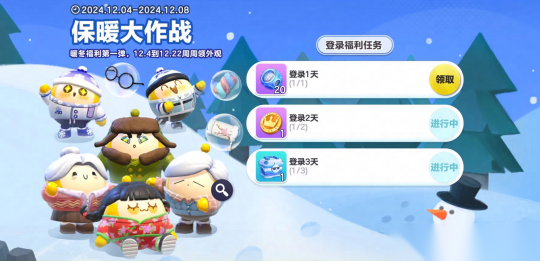 接着,右手点击“保暖大作战”活动,完成相关登录任务,就能获得【暖冬奖励包】。