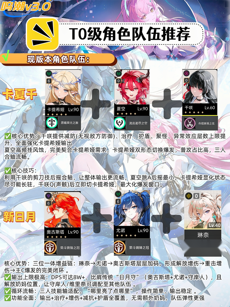 此外,卡夏千队也备受关注,由卡提希娅、夏空和千咲搭配,形成了又一支强力阵容,适合不同战斗场景。