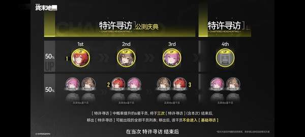 10份升级材料,加快角色成长速度在测试期间,除了各项活动外,总共提供了135次抽卡机会,包括常驻和限时内容。