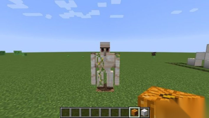 铁块可以通过在工作台用九个铁锭合成,每个铁块需要九个铁锭。南瓜则需要使用剪刀对普通南瓜进行雕刻得到。完成制作后,铁傀儡会自动生成,它会积极攻击附近的僵尸、蜘蛛等敌对生物,起到保护村落和玩家的作用。