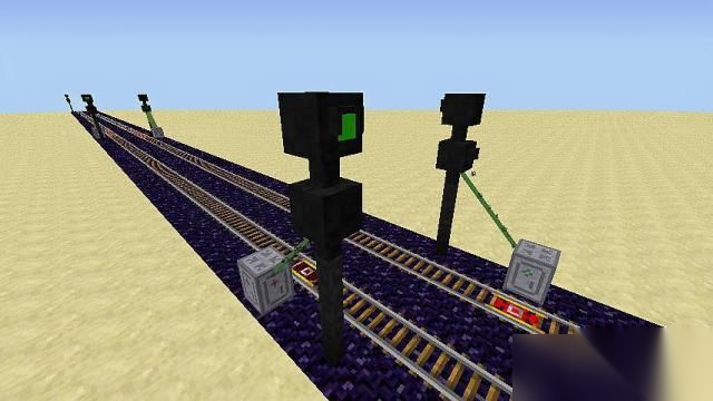 此外,机械动力模组的列车信号机需要先对目标轨道进行右键绑定,放置在轨道附近。其主要功能包括: