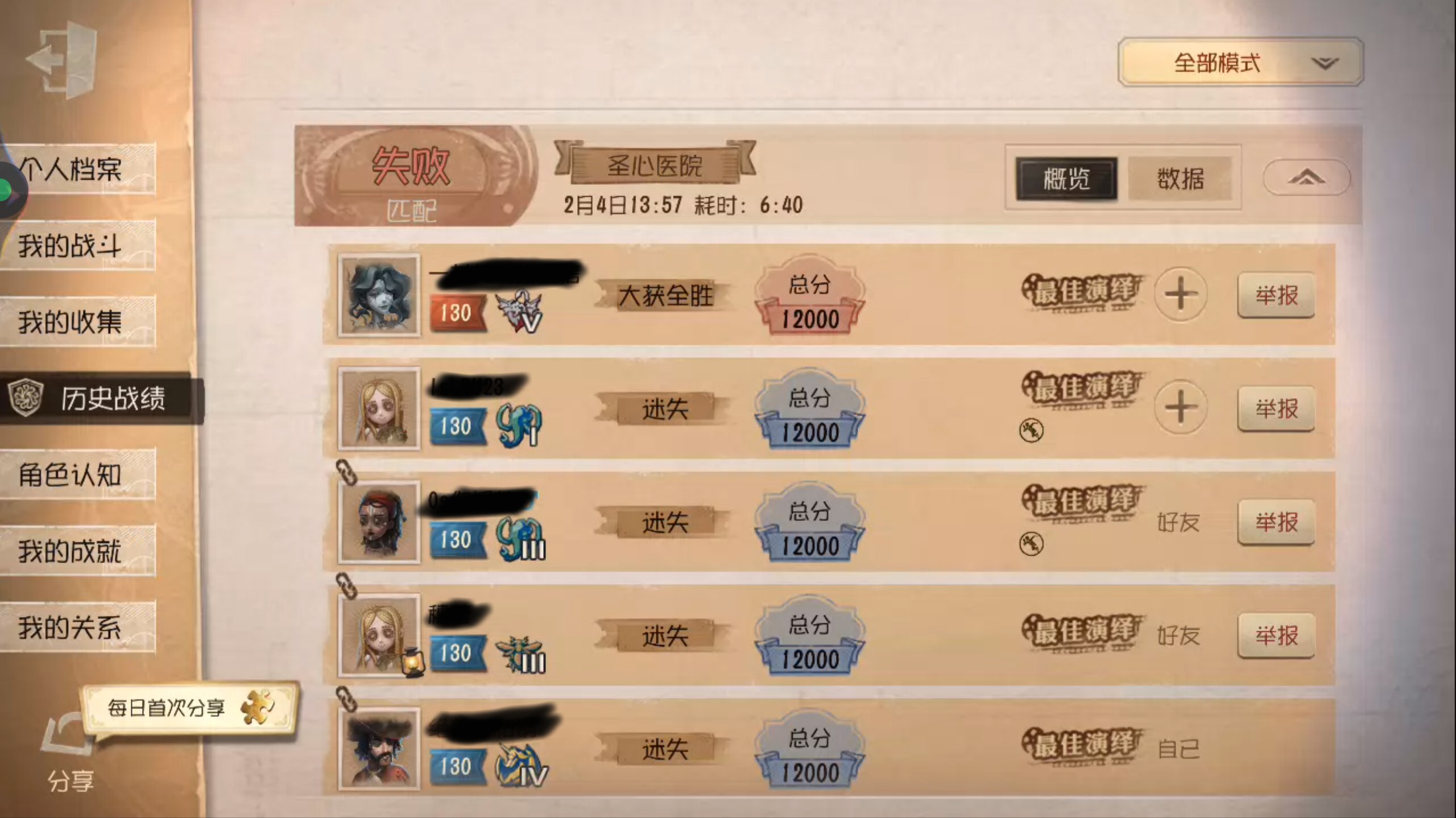 打完排位后闲得无事进了个互演,玩了几把后队里就有人说玩一下之前那个很火的牛仔背人的玩法,浅尝了一把,然后这个渔女温的要命我们四合一我只能翻窗和拍板牵制了他100多秒还砸了他两板子,赛后他被打破防了说我们恶意打团还骂我们说我们浪费时间,我请问呢牛仔和小女孩是有什么超强硬控技能吗?几个书页推一下就让你感觉到愤怒了?四合一牛仔还是闪现开刀才打散的,后面我们倒地了也直接投了,一局也就6分钟也没恶意拖你时间,你要不想打这把也可以直接投的,但很显然你在局内打破防了,我们甚至是在互坑队友的情况下也没有把我们速溶掉,赛后破防大骂给举报了禁言了,也别说这是个竞技游戏什么的,这个游戏能活到现在不就是因为它的玩法多样性吗