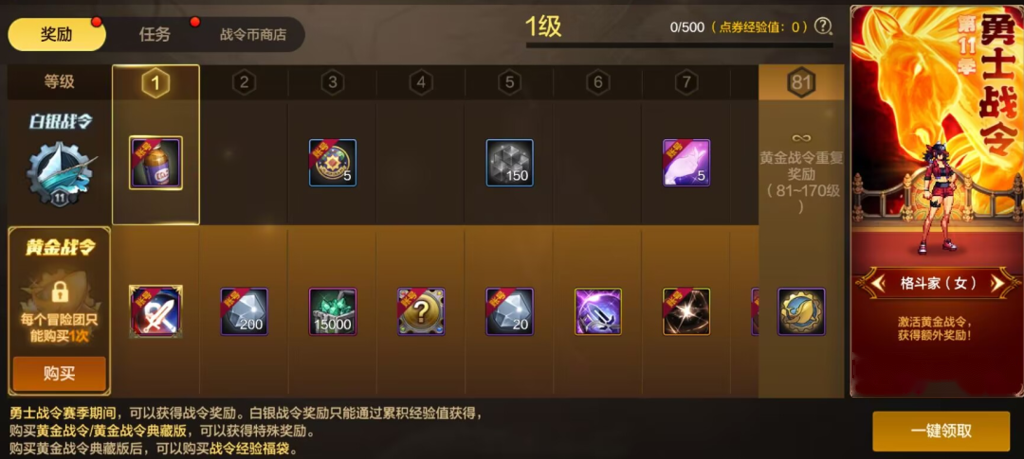 新一轮的战令依然提供两种购买选择:基础档售价为680点券,升级版则需980点券,直接提升30级!【1】值得关注的是,达到1级后即可解锁一颗提升4%伤害的冒险勋章宝珠,为玩家的战斗力添砖加瓦。