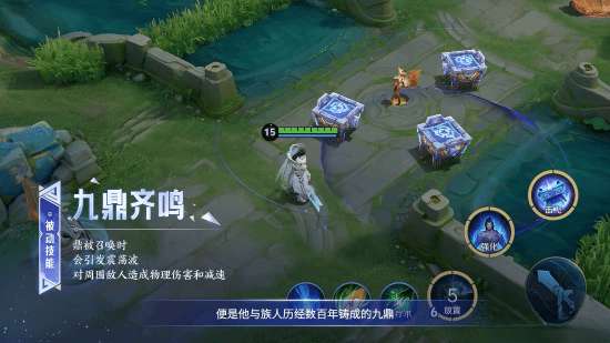 在官方发布的玩法视频中,我们可以看到大禹的核心技能设计。其一技能可以在战场上召唤巨大的鼎,玩家可以利用鼎之间的传送机制实现瞬间支援队友或突袭敌人。这一机制极大增强了大禹的机动性与战场掌控力。大禹的技能还能召唤巨大鼎,造成范围伤害,并伴随击飞效果与震荡,为团队开团提供了有力的支援手段。