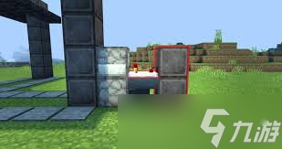 在门框一侧的底部放置一块红石粉,作为红石线路的起点。