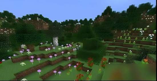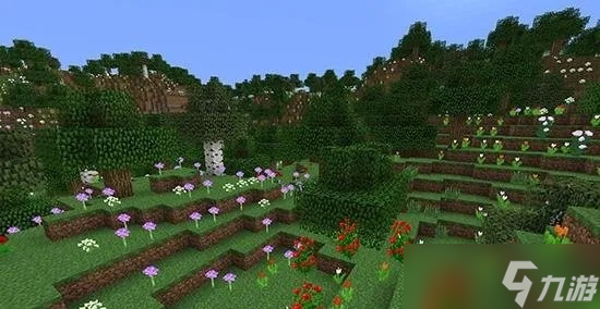 暮色森林与主世界相比,有着截然不同的生态环境。这里生长着庞大的暮色橡树和苍穹树,部分树木的高度令人震惊,整个维度弥漫着一种神秘而奇异的氛围。