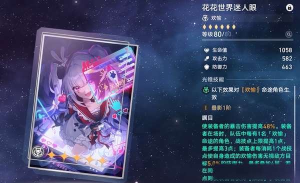 随着新版本的推出,玩家可以获得的欢愉光锥数量变得有限。若打算优先培养火花花,建议为她抽取一把专属武器。这不仅能显著增强装备者的暴击伤害,还能在消耗超过4个战技点后,提升全队20%的欢愉度速度,增强团队整体的战斗效率。