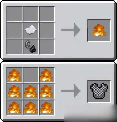 打火石是点燃篝火和火把的关键材料,制作配方为:燧石×1 + 铁锭×1。
