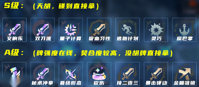 例如,物理和魔法类的通用牌包括“啥”、“最大雪球”、“魔鬼之舞”、“灵魂虹吸”、“台风”以及“会心防御”。