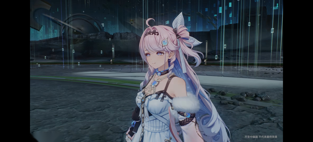 她的常态形态采用黑粉色调,胸口的共鸣解放机制会解封那条锁链,变身后呈现出黑蓝相间的鸣式形态,背后还会显现出阿列夫的标志。胸口处嵌有三星声痕标志,手中搓出能量球,散发出炽热的光芒。